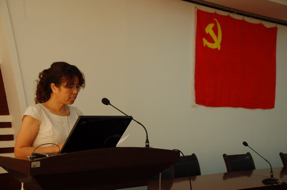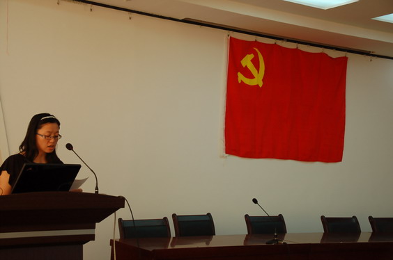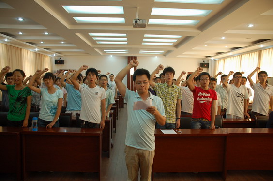 宣誓仪式在庄重的国际歌声中开始。2010年上半年发展的75名新党员,在领誓人的带领下,面对鲜红的党旗,庄严宣誓。
