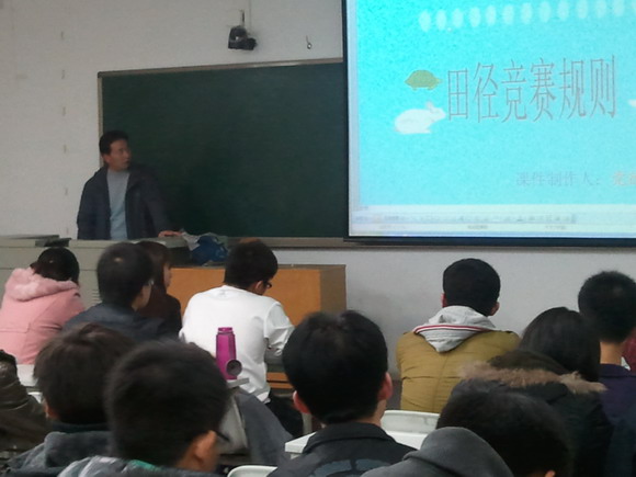 11月21日晚七点半,澳门新葡京网址 与农学院、园艺学院共同参加了在八号楼309教室举办的运动会裁判员工作培训。培训主讲人为园艺学院体育辅导员党德洲老师,三院60余名学生裁判员参加了培训。