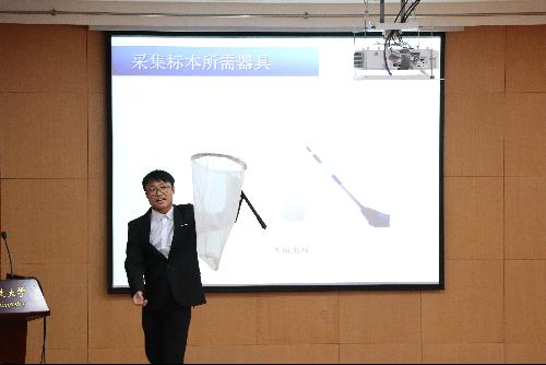 雕虫负责人李翔同学为大家讲解捕虫网的使用方法