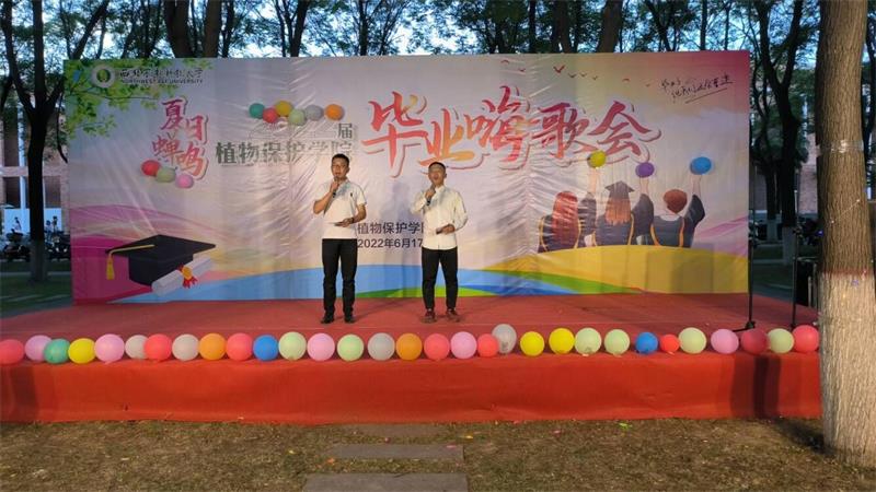晚会伊始,本科生伍雨垚同学表演的街舞,瞬间点燃了全场师生的热情。紧接着2019级本科生在青春歌声中唱出了对学长学姐的美好祝愿,用青春热情为毕业生们留下了毕业季最难忘的回忆。随后,在读研究生的倾情演唱,为即将毕业的师兄师姐、学弟学妹奉上了一场音乐盛宴,在西农夏日的夜空久久回荡。同时,毕业生们在他们的歌声中表达了对校园的不舍和对未来的信心与继续拼搏的勇气。最后,现点现唱的自由模式将嗨歌会的气氛推向了高潮,学院其他年级的本科生、其他学院的毕业生、老师纷纷在歌曲中表达了对毕业生的美好祝福。