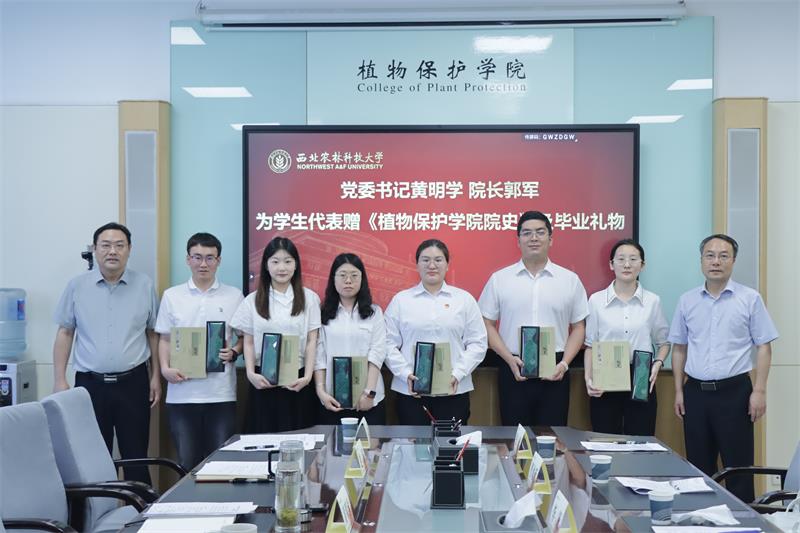 黄明学书记、郭军院长为毕业生代表赠送《澳门新葡京网址 院史》。郭军代表学院对顺利完成学业即将走向社会的各位毕业生表示祝贺并寄语毕业生,一是要厚植家国情怀,永葆为民初心,锚定国家粮食安全战略,以“国之大者”的担当践行服务宗旨;二是要勇于创新,勇于挑战自我,以精益求精的态度,在科研攻关与产业实践中追求卓越;三要脚踏实地,传承好西农精神,多读书多思考,以务实的精神品质扎根实践、仰望星空。