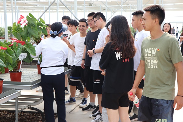 “这是我们的云控制中心,在电子大屏上,可以实时看到大棚内作物的生长情况,监测棚内温度、空气湿度、光照条件、二氧化碳等,并根据作物生长需求随时调节各项环境指标,实现智能化控制。”园区讲解员指着眼前的荧光大屏为党员学生详细的介绍着,讲解员的一番话打破了学子们对传统农业是“面朝黄土背朝天”的刻板印象,使学生更加清楚了解了现代农业,对于今后学习科研中,如何让农业插上科技腾飞的翅膀有了新的思考。活动中,园区工作人员带领全体党员实地参观了智慧农业综合服务中心、智慧农业展示区、智慧温室、植物工厂等功能区。